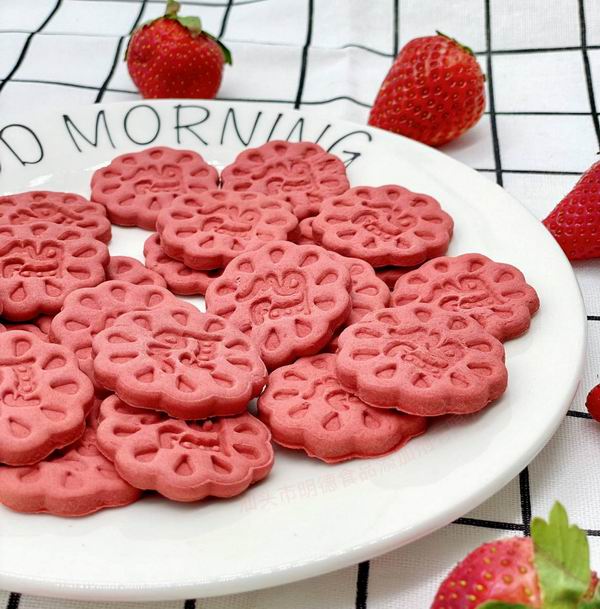<明德香精+明德色素,草莓風(fēng)味餅干應(yīng)用效果實(shí)拍圖。盜圖必究>