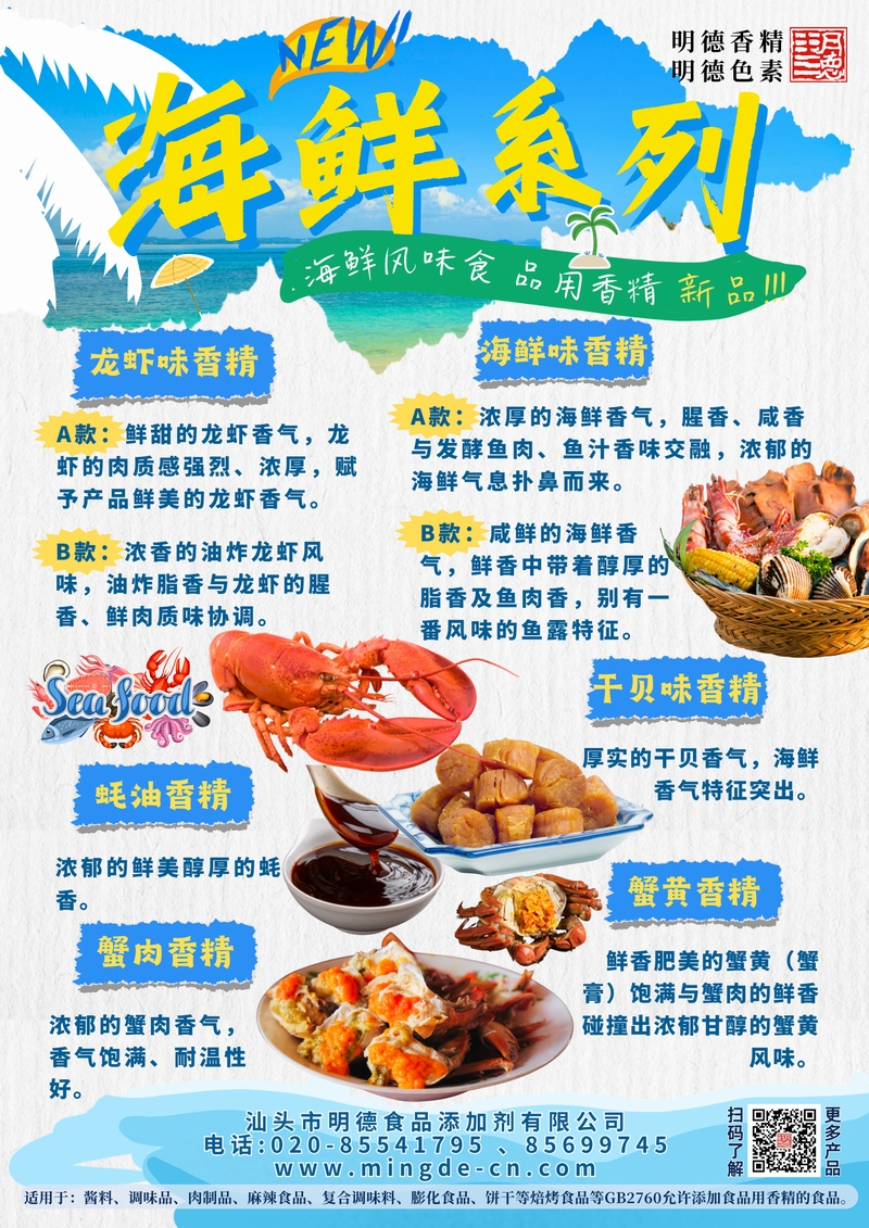 香型描述:濃郁的蟹肉香氣,香氣飽滿、耐溫性好。