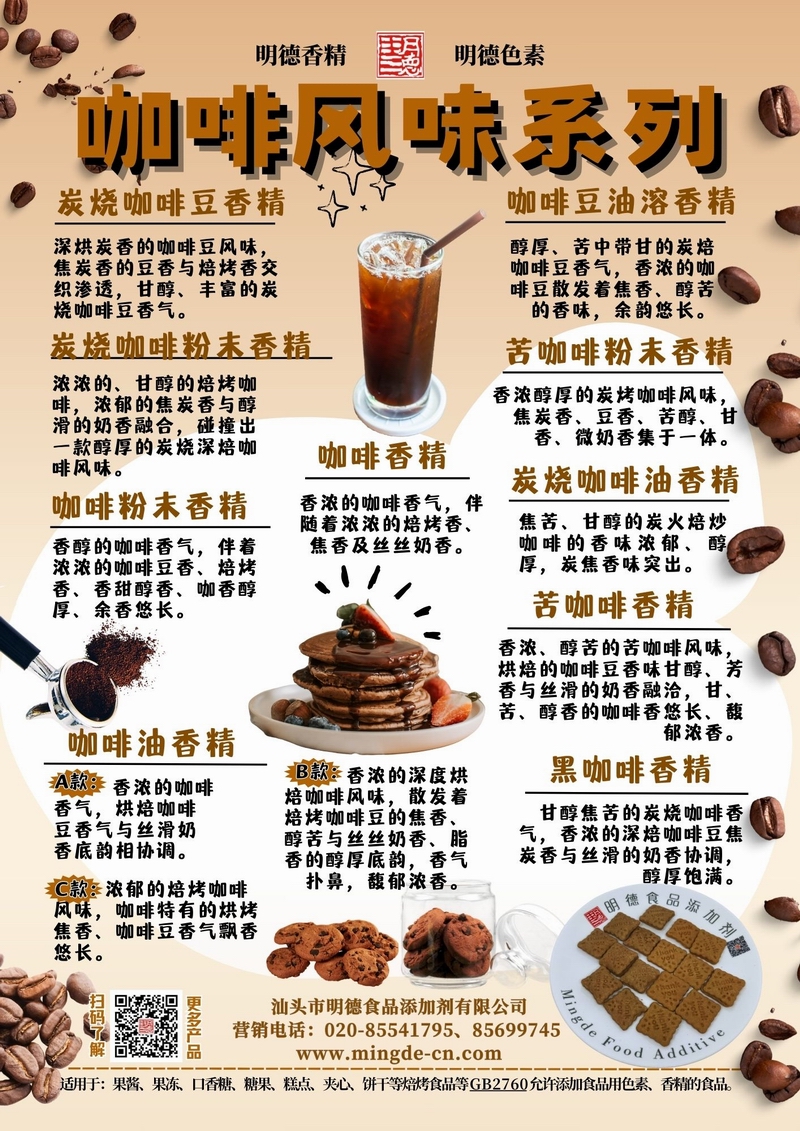 明德咖啡風(fēng)味系列香精 | 多層咖啡醇香 覆蓋豐富應(yīng)用場景汕頭市明德食品添加劑有限公司推出的咖啡風(fēng)味系列香精,涵蓋多種焙炒、奶香、焦糖及深度烘焙調(diào)性,滿足飲品、烘焙、糖果、乳制品等多領(lǐng)域的咖啡風(fēng)味需求,為B端客戶提供穩(wěn)定、真實的咖啡香氣解決方案。